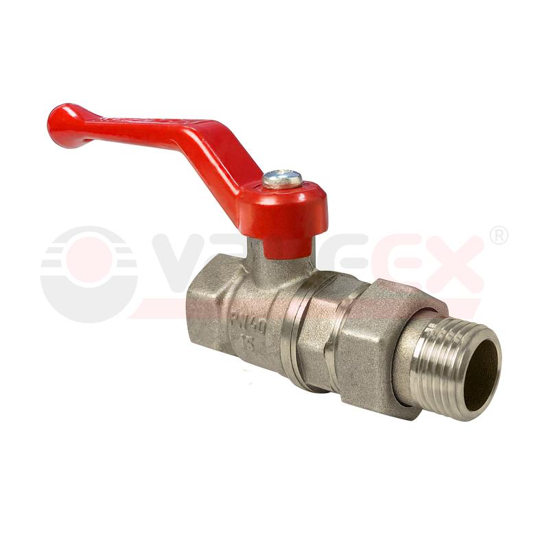 Кран шаровой латунный с американкой никел. покрытие ВН/НР ручка-рычаг 1 1/4дюйм (8/2) VALFEX VF.225.NR1.114