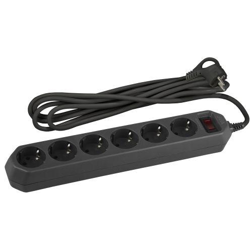 Удлинитель с сетевым фильтром 6х3м с заземл. 10А IP20 USF-6es-3m-B с выкл. с базов. защитой черн. Эра Б0037263