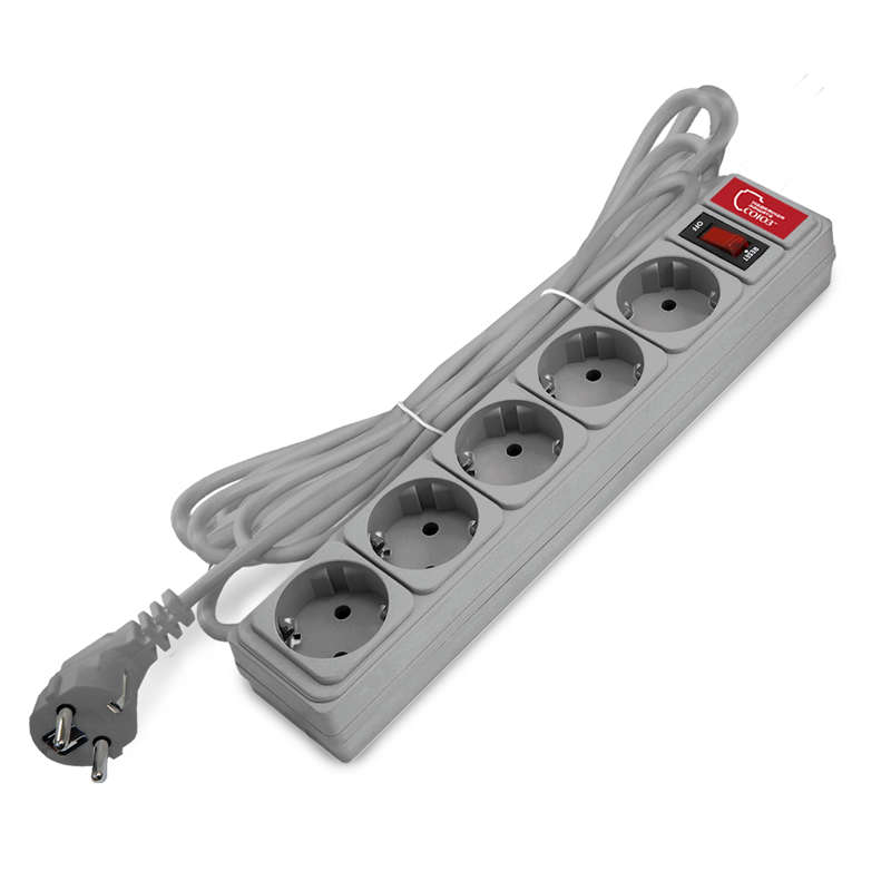 Удлинитель с сетевым фильтром 5х5м с заземл. с выкл. 16А с защ. от скачков напр. и перегрузок 3х1 сер. TOKOV ELECTRIC TKE-C06-SF5-5-ZV