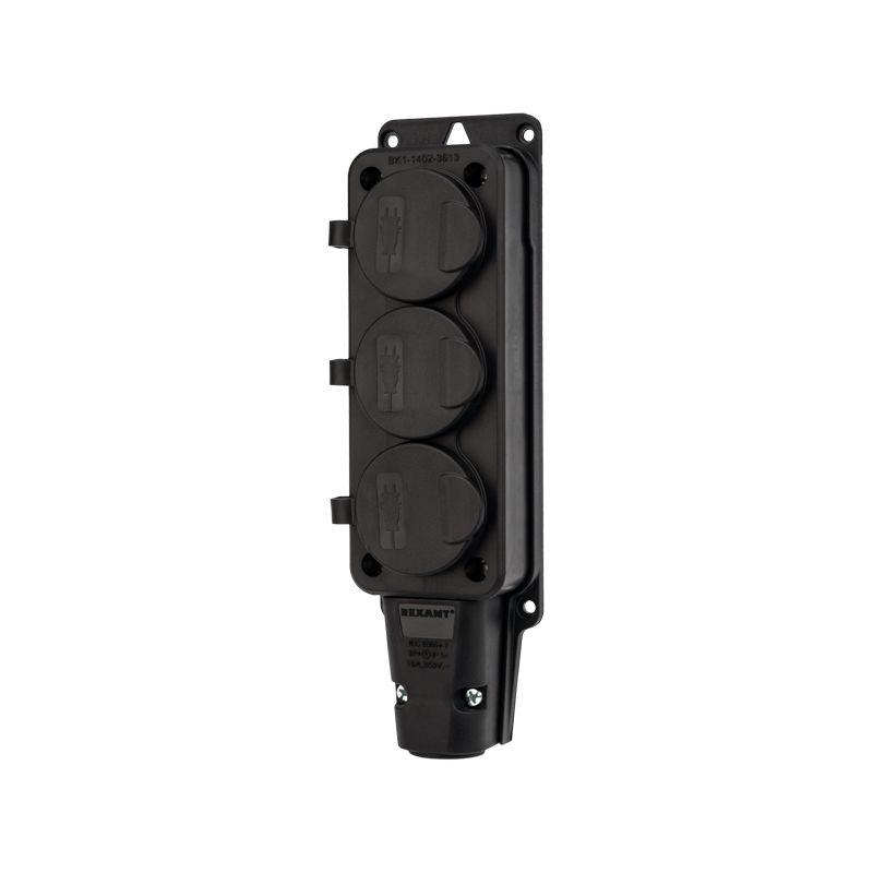 Розетка штепсельная трехместная влагозащ. с/з 16А IP54 каучук Rexant 111-113