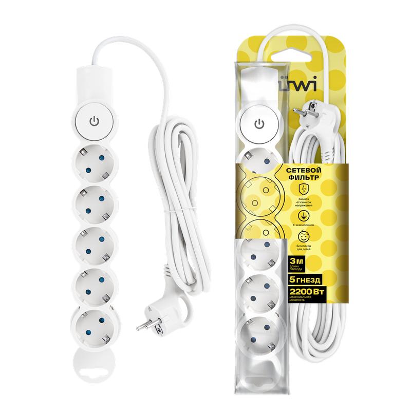 Удлинитель 5х1.5м с заземл. 16А IP20 Uno У05 2P+PE 250В 3х1.5 IEK WYP53-16-05-D15-Z