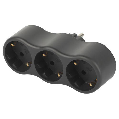 Разветвитель электрический SPx-3e-B на 3 розетки с заземл. 16А черн. Эра Б0059723