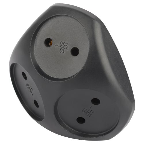 Разветвитель электрический SPx-3-B на 3 розетки без заземл. 10А черн. Эра Б0059721
