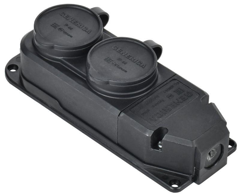 Колодка удлинителя 2-м 16А IP44 с защ. крышкой каучук черн. GENERICA ERK20-016-02-44-K02-G