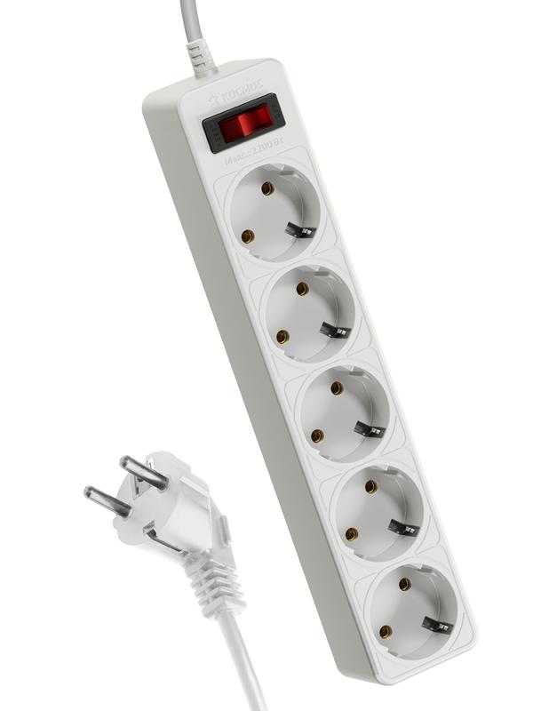 Удлинитель с сетевым фильтром 5х5м с заземл. 10А IP20 2.2кВт ПВС 3х0.75 с выкл. с индикатором сети бел. КОСМОС FKsm5m-5g(W)