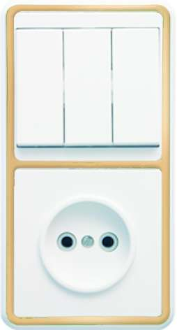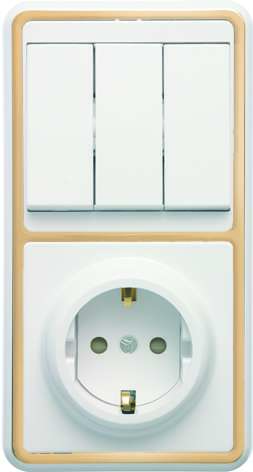 Блок БКВР-036 Бэлла (3-кл. выкл. + евророзетка с защ. шторками) зол. Кунцево 5848