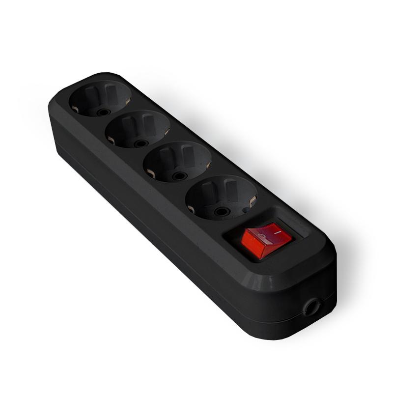 Колодка удлинителя 4-м с заземл. с выкл. АБС-пластик черн. UNIVersal 1403