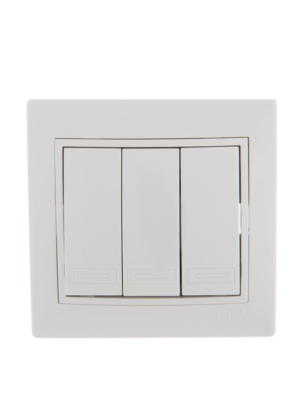 Выключатель 3-кл. СП Mira 10А IP20 с бел.вставкой бел. LEZARD 701-0202-109
