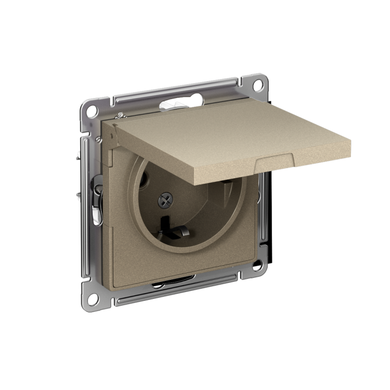 Розетка 1-м СП AtlasDesign 16А IP20 с заземл. защ. шторки с крышкой механизм шампань SE ATN000546