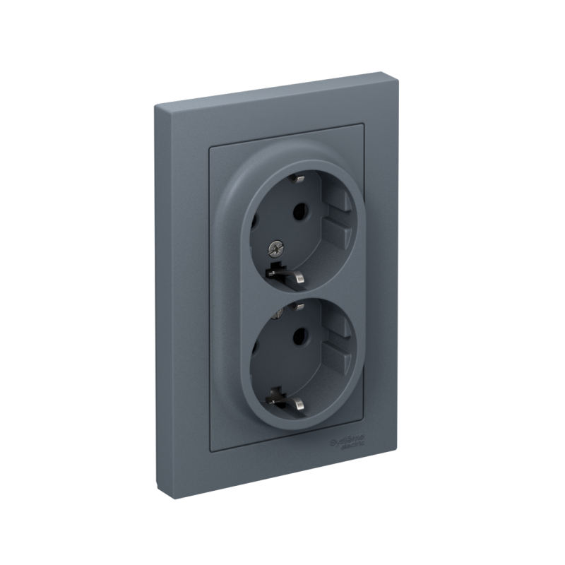 Розетка 2-м СП AtlasDesign 16А IP20 с заземл. защ. шторки в сборе грифель SE ATN000726