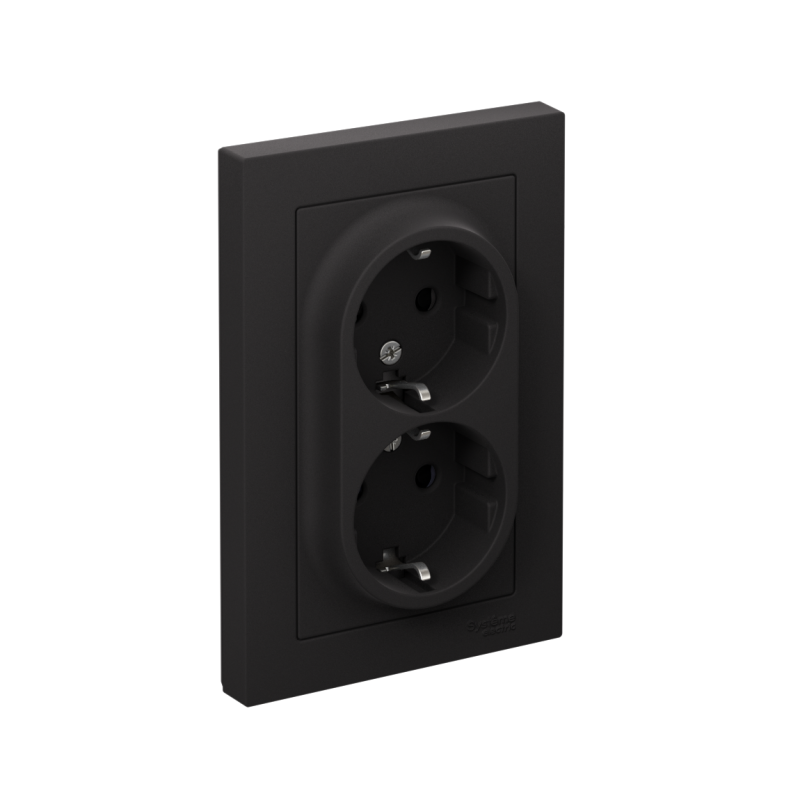 Розетка 2-м СП AtlasDesign 16А IP20 с заземл. защ. шторки в сборе карбон SE ATN001026