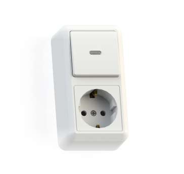 Блок комбинированный ОП БКВР-432 Оптима (1-кл. выкл. с подсветкой + розетка с заземл.) бел. Кунцево 8065