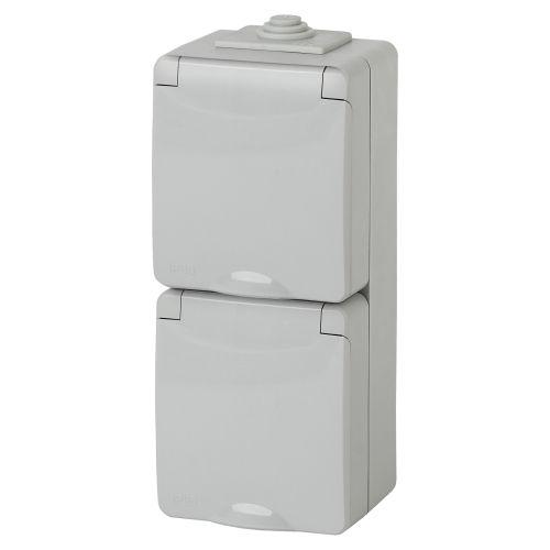 Розетка 2-м ОП Эра Эксперт 11-2607-03 16А IP65 верт. 250В 2х2P+E сер. Эра Б0036002