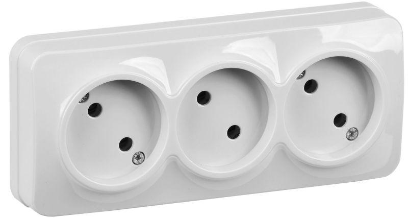 Розетка 3-м ОП GLORY РС23-2-ХБ 10А без заземл. бел. IEK ERH30-K01-10