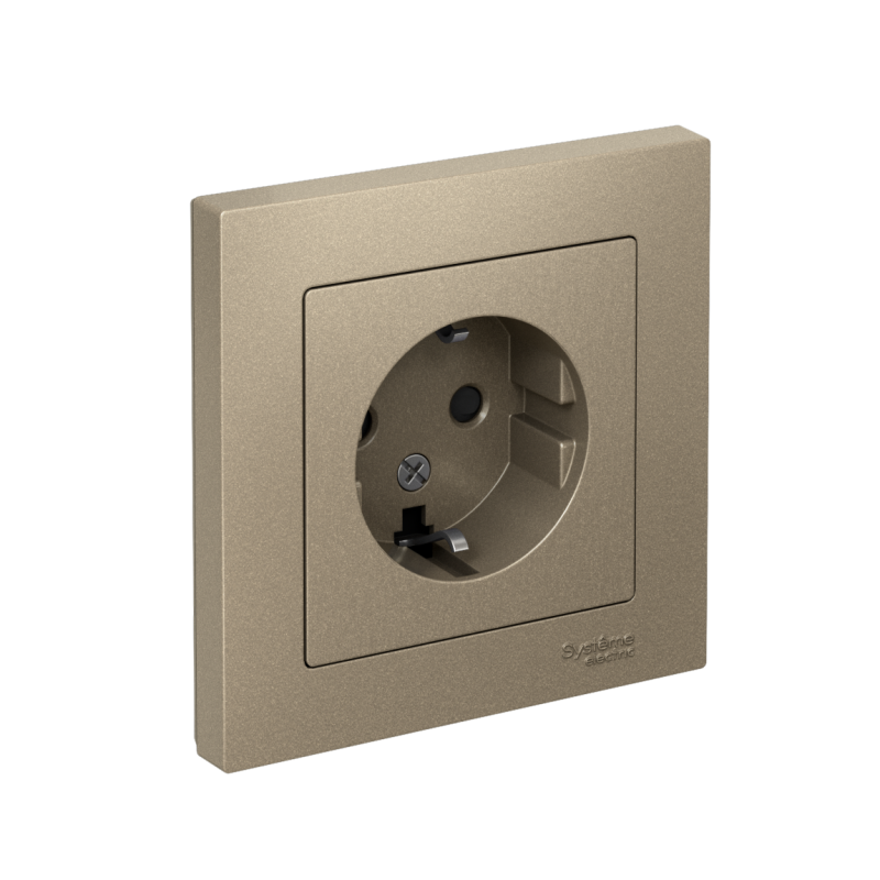 Розетка 1-м СП AtlasDesign 16А IP20 с заземл. защ. шторки в сборе шампань SE ATN000544