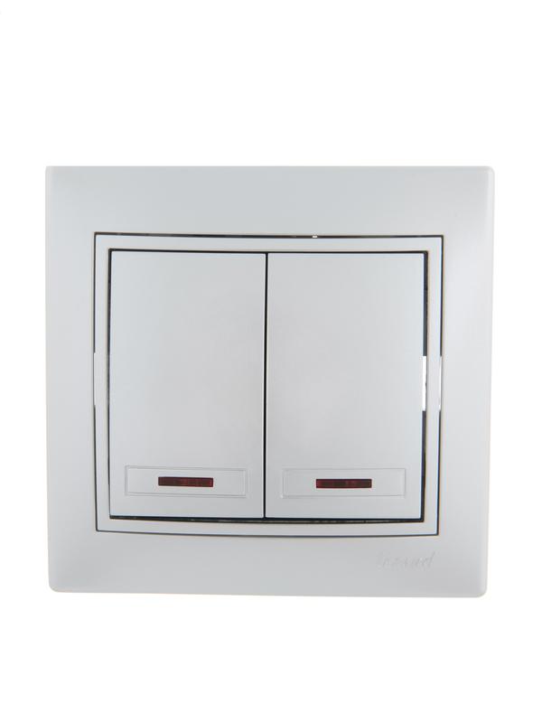 Выключатель 2-кл. СП Mira 10А IP20 с подсветкой со вставкой сер. метал. LEZARD 701-1010-112