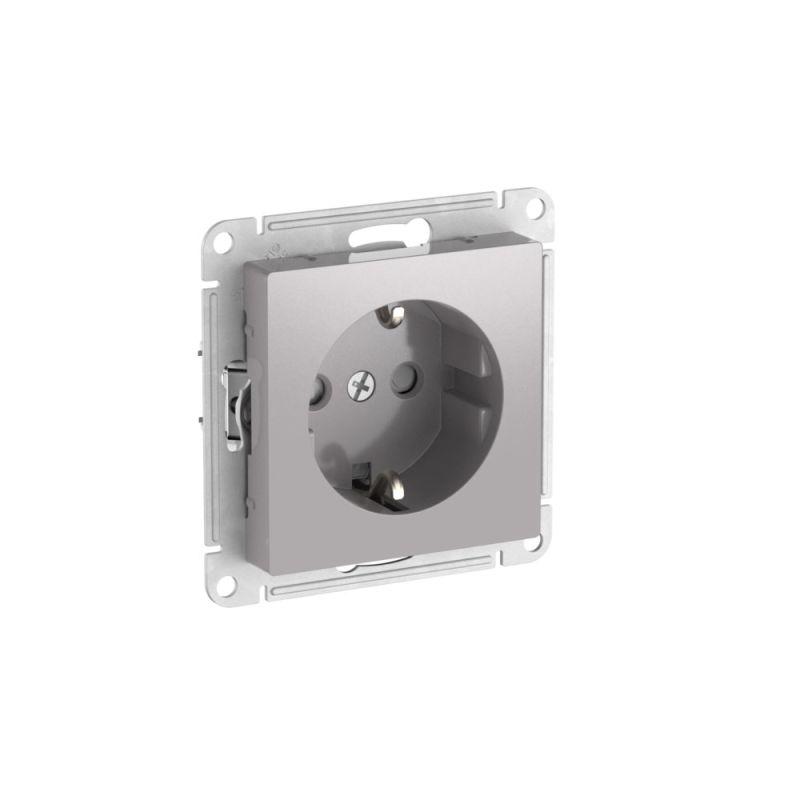 Розетка AtlasDesign 16А с заземл. защ. шторки быстрозажим. клем. механизм алюм. SE ATN000345S