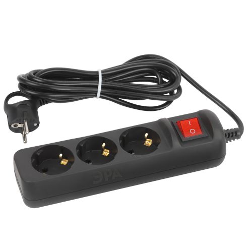 Удлинитель 3х5м с заземл. 10А с выкл. ПВС 3х0.75 черн. UX-3es-5m-B Эра Б0057729