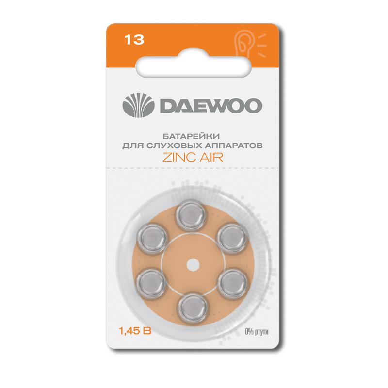 Элемент питания воздушно-цинковый ZA13/PR48 1.45В BL-6 (блист.6шт) для слуховых аппаратов DAEWOO 5060371