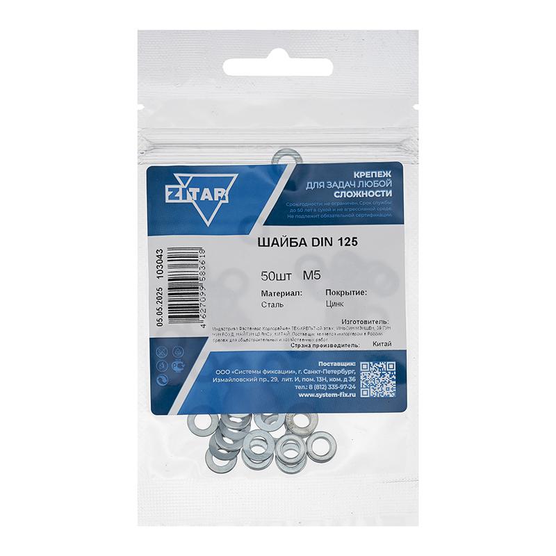 Шайба плоская М5 DIN 125 цинк. (пакет) (уп.50шт) Zitar 103043