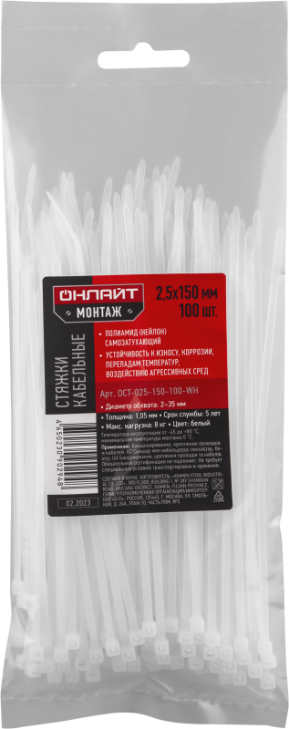 Хомут 90 294 OCT-025-150-100-WH (уп.100шт) ОНЛАЙТ 90294