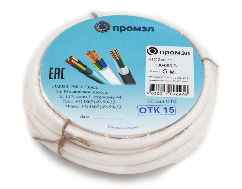 Провод ПВС 2х0.75 Б (бухта 5м) (шт) ПромЭл 13321440