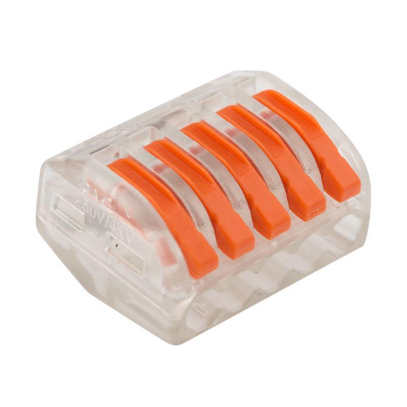 Клемма строительно-монтажная СМК 222-415 5-проводная 0.08-2.5/4кв.мм прозр. (уп.40шт) Rexant 07-5255-1