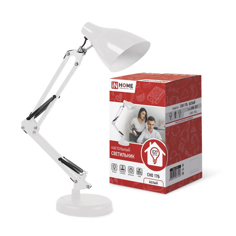 Светильник настольный СНО 17Б 60Вт E27 230В под лампу на основании бел. (кор.) IN HOME 4690612037226