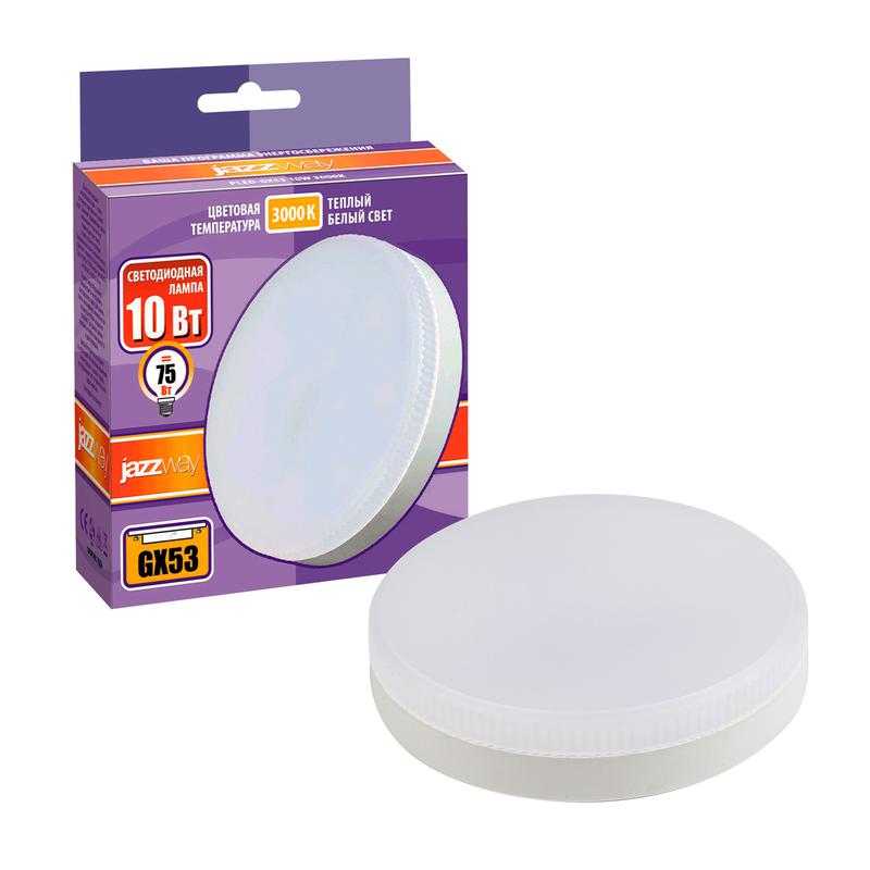 Лампа светодиодная PLED-GX53 10Вт таблетка матовая 3000К тепл. бел. GX53 800лм 230В JazzWay 1029072