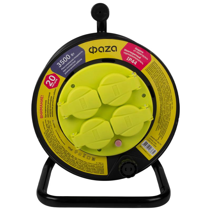 Удлинитель на катушке 4х20м с заземл. IP44 CRW-04-2000 ФАZА 5063839
