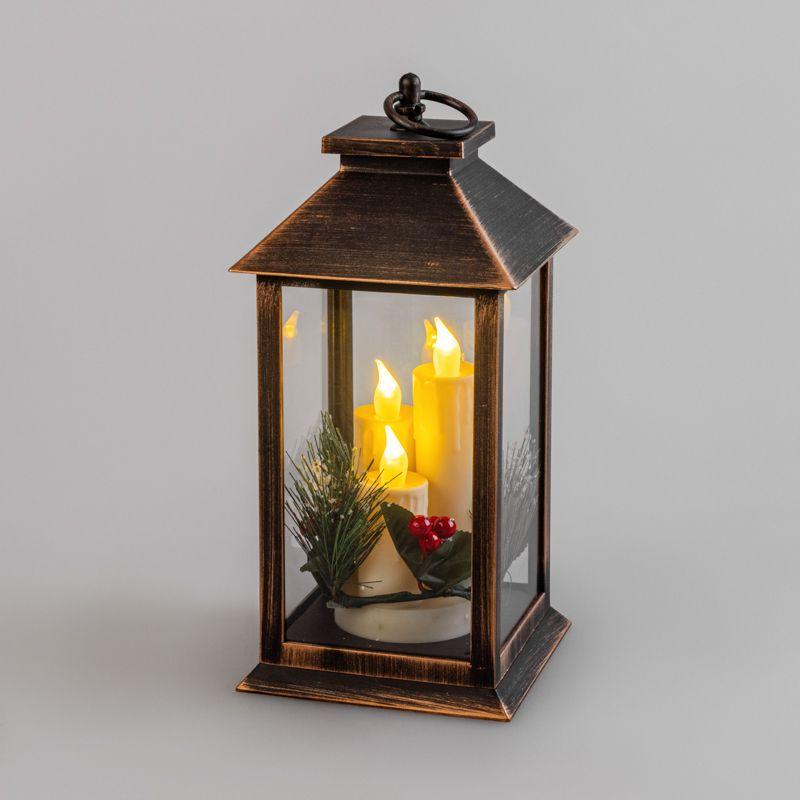 Фонарь декоративный 14х14х27см тепл. бел. со свечкой и шишкой корпус бронз. Neon-Night 513-048