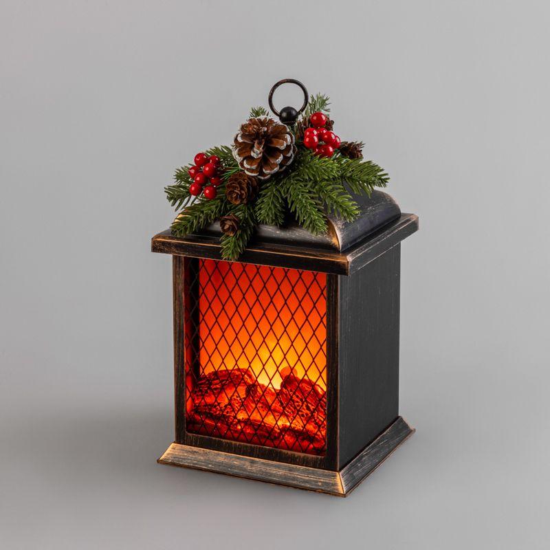 Камин светодиодный Рождество с эффектом живого огня 15х14х26см батарейки 2хС (не в комплекте) и USB бронзовый Neon-Night 511-027
