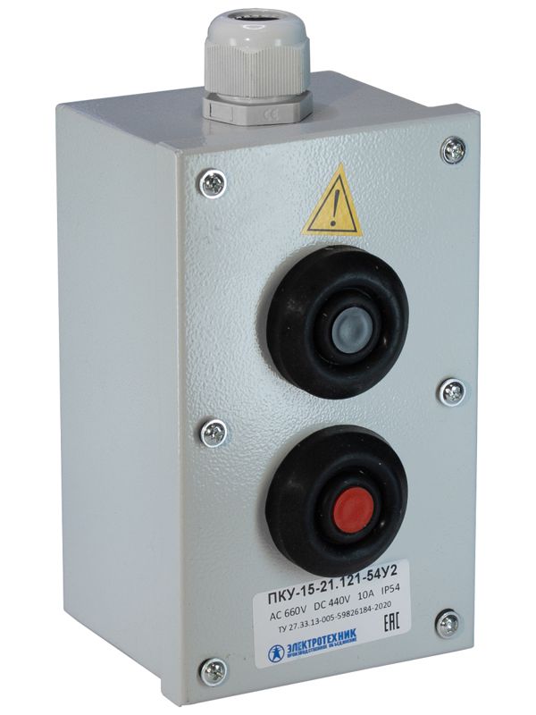 Пост кнопочный ПКУ-15-21.121-54 У2 (1хВК30-10-11110-54 (1з+1р) черн. + 1хВК30-10-11110-54 (1з+1р) красн. + PG-19) пост управления Электротехник ET054487