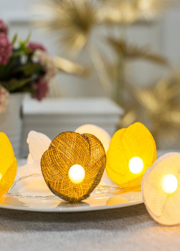 Гирлянда светодиодная "Цветы" желт. гамма 10LED ткань тепл. бел. 1.8+0.3м КОСМОС KOC_GIR-B110