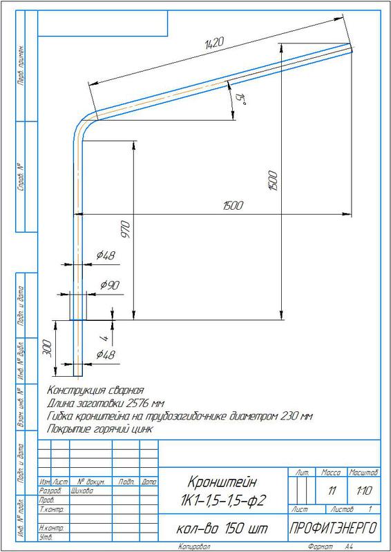 Кронштейн однорожковый "Стандарт" под UMECON 1.К1-1.5-1.5-ф2 D48мм гор. цинк