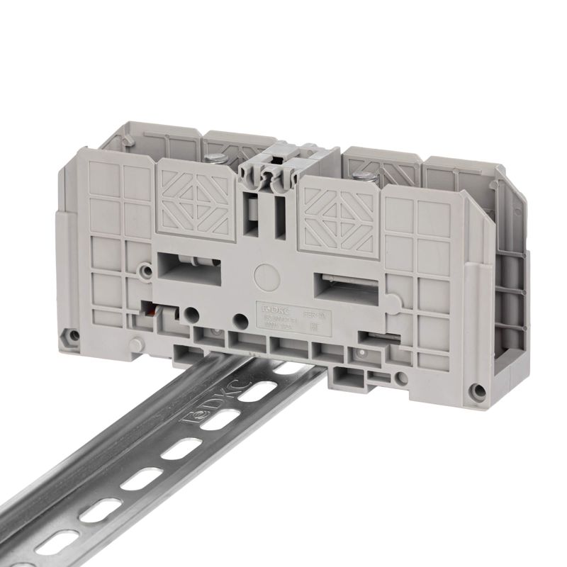 Блок распределительный с вертикал. адаптером на рейки шир. 15/35мм зажим push-in 10 точек подключения 2.5кв.мм сер. DKC DTP1-010-04SPUG-V