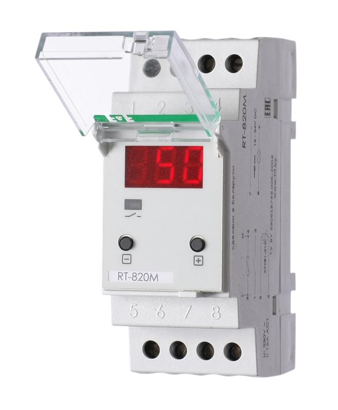 Регулятор температуры RT-820M от -30 до +140 град.C; 16А 24-264В DC/30-264В AC 1Z IP20 микропроцессорный; многофункц.; цифровая индикация; выносной датчик с термоус. проводом; монтаж на DIN-рейке 35мм F&F EA07.001.007