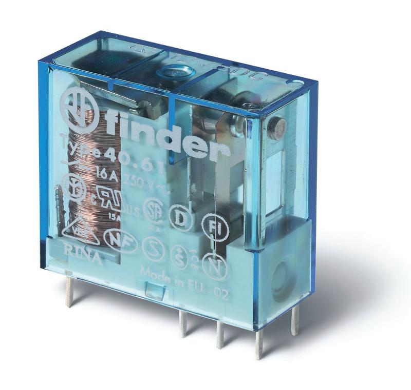 Реле миниатюрное универсальное электромеханич. монтаж на печатную плату или в розетку выводы с шагом 5мм 1CO 16А AgCdO 24В DC RTII FINDER 406190240000
