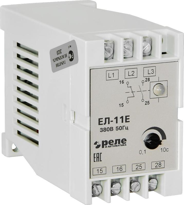 Реле контроля трехфазного напряжения ЕЛ-11Е 380В 50Гц задержка срабатывания 0.1-10с ток контактов исполнительного реле 5А 2п УХЛ4 Реле и Автоматика A8222-77135136