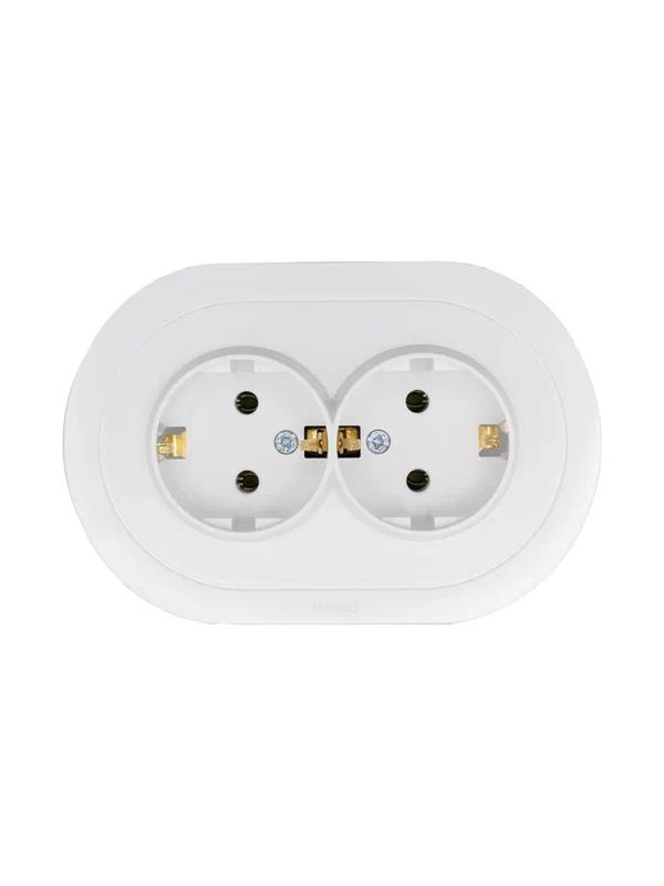 Розетка 2-м СП OSEN с заземл. ПБТ круглая механизм бел. LEZARD 744-0200-127B