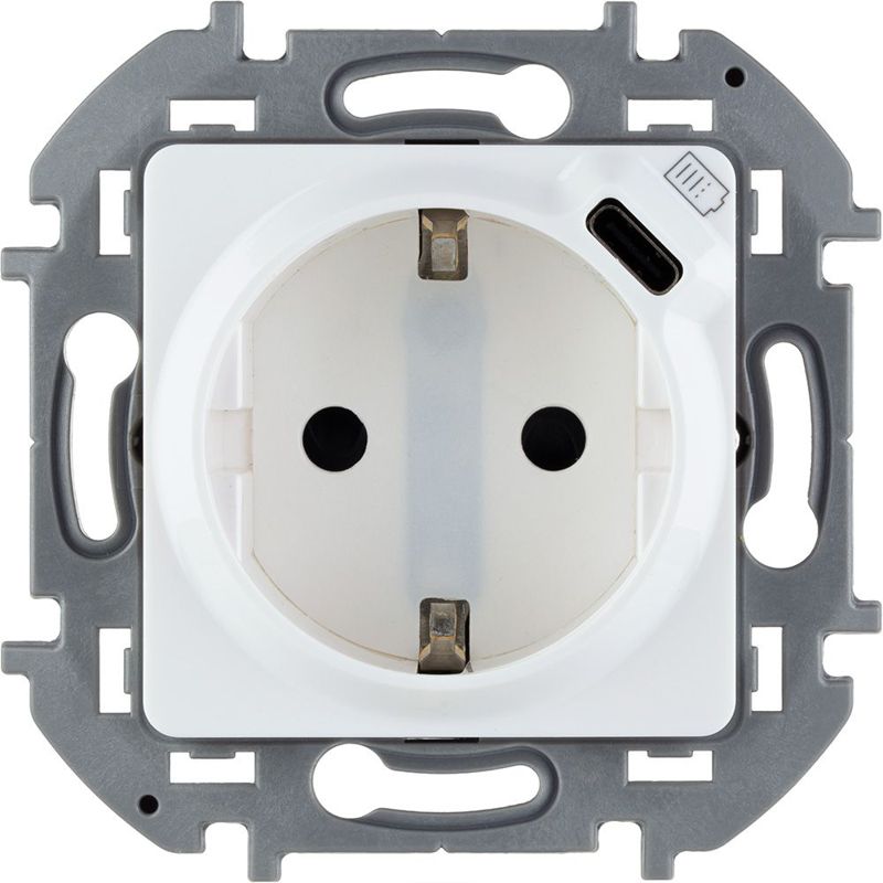 Розетка 1-м СП Inspiria 16А IP20 250В 2P+E немецк. стандарт с заряд. устройством USB тип C 1.5А 5В механизм бел. IEK 673770
