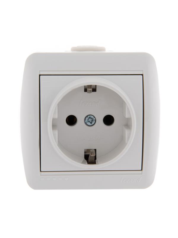 Розетка 1-м СП Mira 16А IP20 с заземл. с защ. крышкой с бел. вставкой керамика бел. LEZARD 701-0202-123