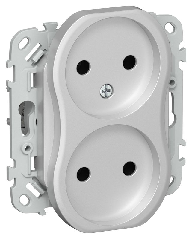Розетка 2-м СП FLITE РС02-1-ФлА 10А без заземл. без защ. шторок безвинтовое крепление механизм алюм. IEK FI-R20-10-1-K47