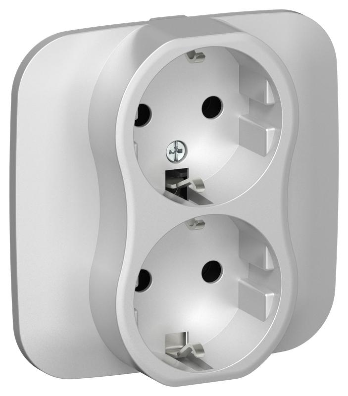 Розетка 2-м СП AtlasDesign 16А IP20 с заземл. защ. шторки в сборе алюм. SE ATN000326