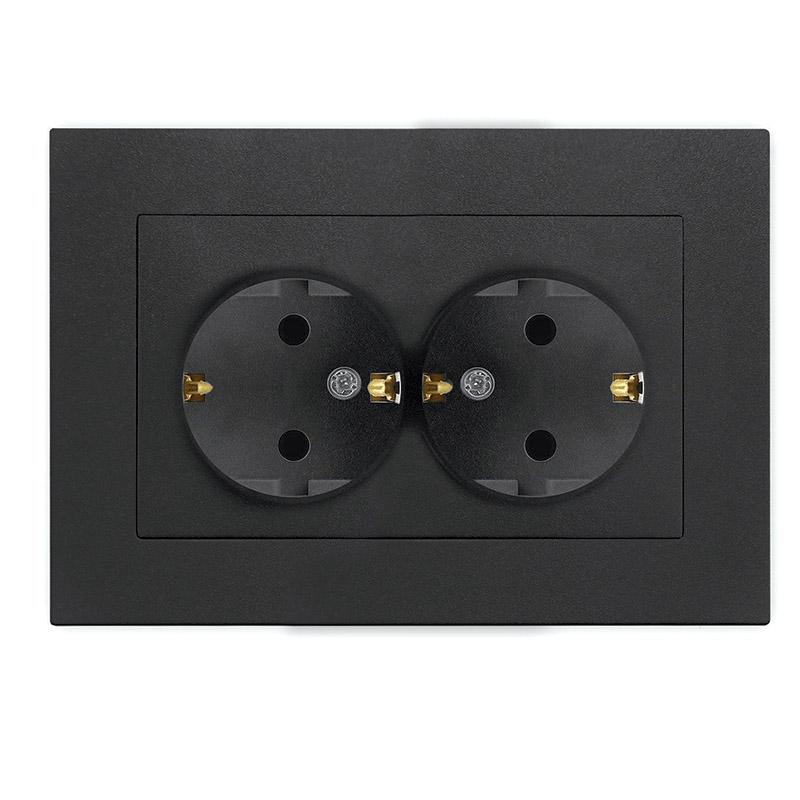 Розетка 2-м СП Афина 16А IP20 с заземл. в сборе графит Universal A0128-Gr