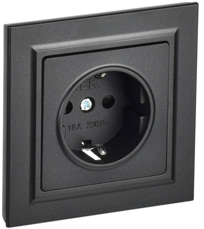 Розетка СП BRITE РСР14-1-0-БрЧ 16А в сборе с заземл. защ. шторки черн. IEK BR-R14-16-K02-F