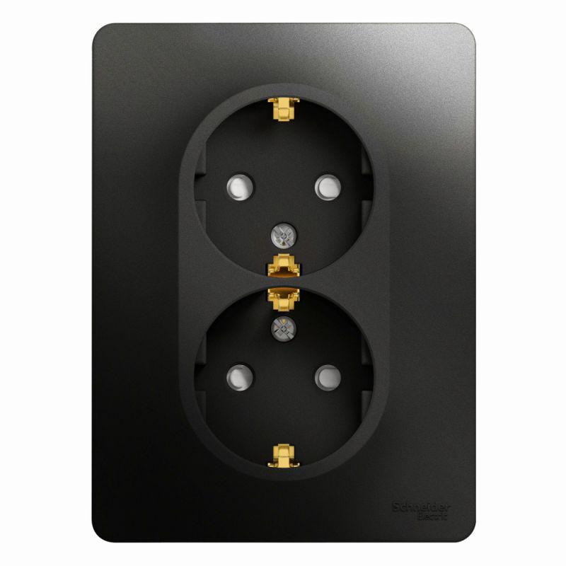Розетка 2-м Glossa 16А с заземл. защ. шторки в сборе антрацит SE GSL000726