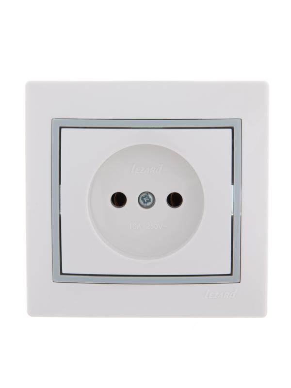 Розетка 1-м СП Mira 16А IP20 без заземл. с сер. вставкой керамика бел. LEZARD 701-0215-121