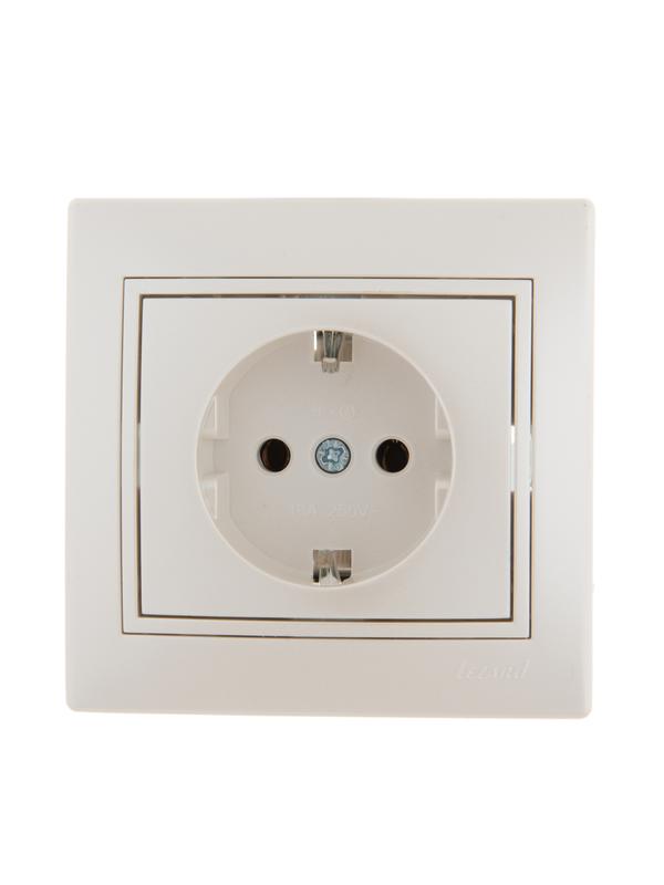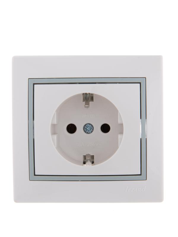 Розетка 1-м СП Mira 16А IP20 с заземл. с сер. вставкой керамика бел. LEZARD 701-0215-122