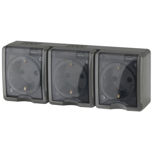Розетка 3-м ОП Эра Эксперт 11-2405-03 16А IP54 16AX 250В 3х2P+E сер. Эра Б0020721